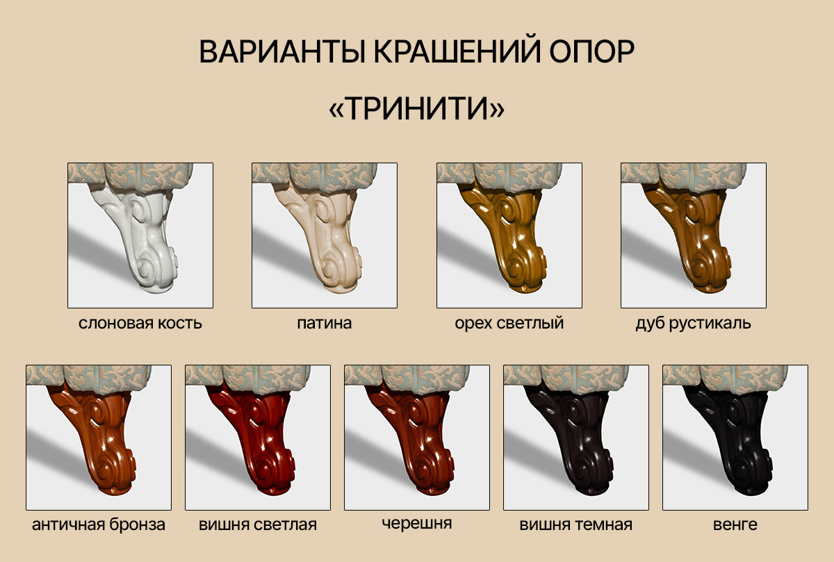 ✅ Ножки дивана из массива дерева можно окрасить в представленные цвета.