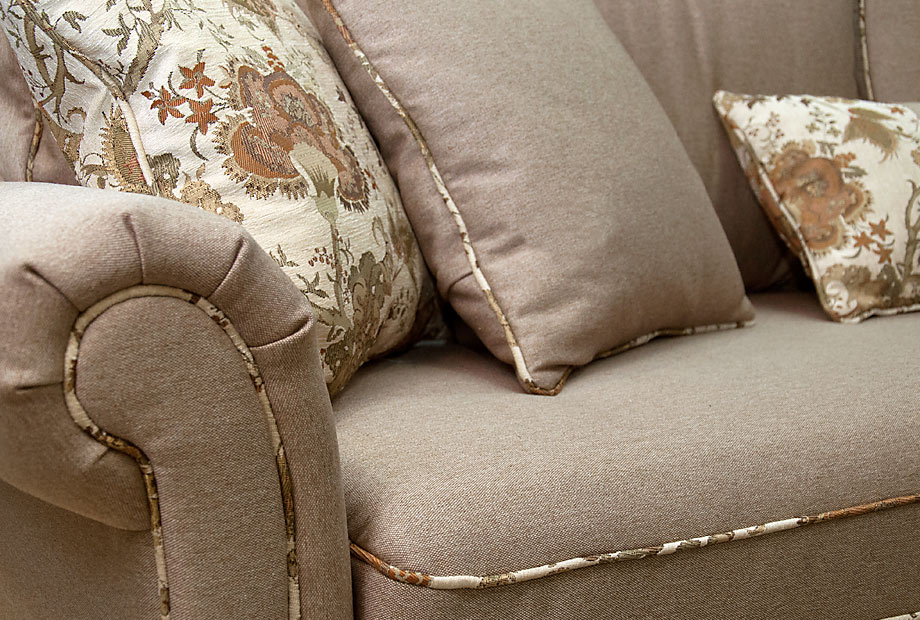✅ Диван украшен декоративным кантом по контуру сиденья, боковин, декоративных подушек и подушек спинки.