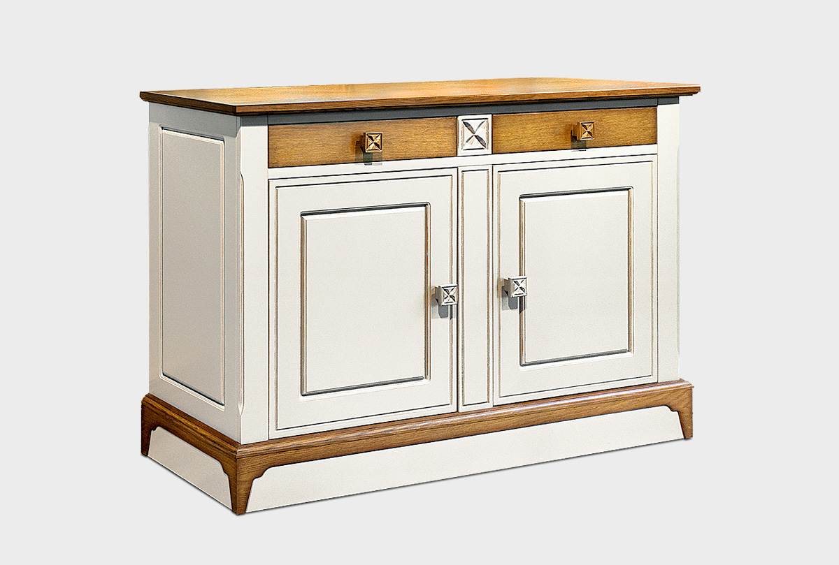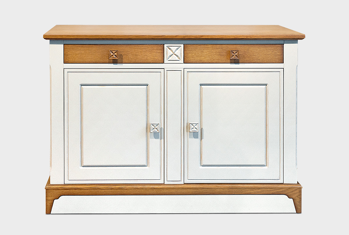 Двухдверная тумба Brianson в цвете "жемчуг+дуб" оснащена двумя выдвижными ящиками для хранения мелочей, а так же отделением с дверцами. Тумба «Бриансон» может стать, как самостоятельной частью Вашего интерьера, так и дополнением к буфету.