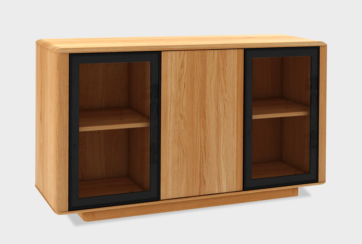Тумба «Origin» 3-х дверная — это элегантное сочетание стекла и дуба, в котором функциональность соединяется с лёгкостью восприятия. Две витринные секции со стеклянными фасадами в тонкой чёрной рамке подчеркивают современный ритм дизайна, а центральная глухая дверь визуально балансирует композицию. Тумба станет выразительным акцентом гостиной, столовой или кабинета, создавая атмосферу премиального спокойствия.