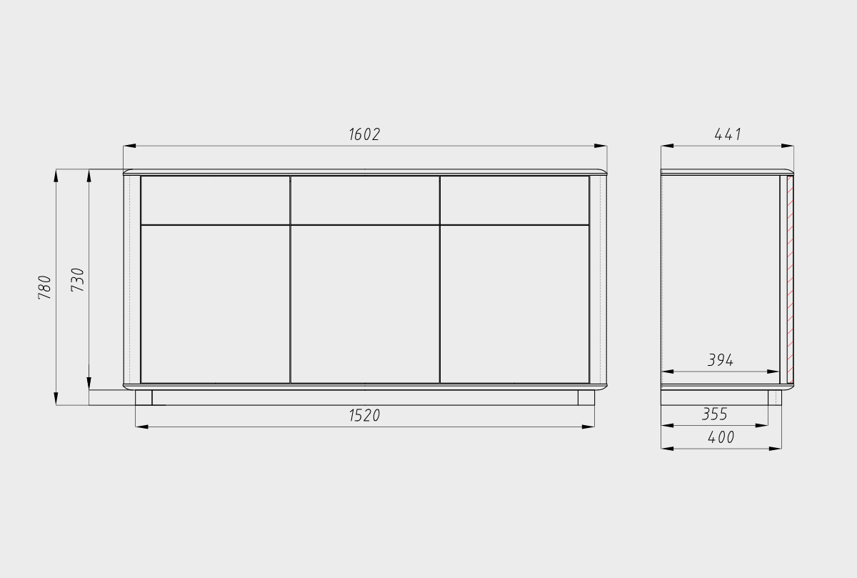✅ Размеры: ширина 1602 мм, высота 780 мм, глубина 441 мм.