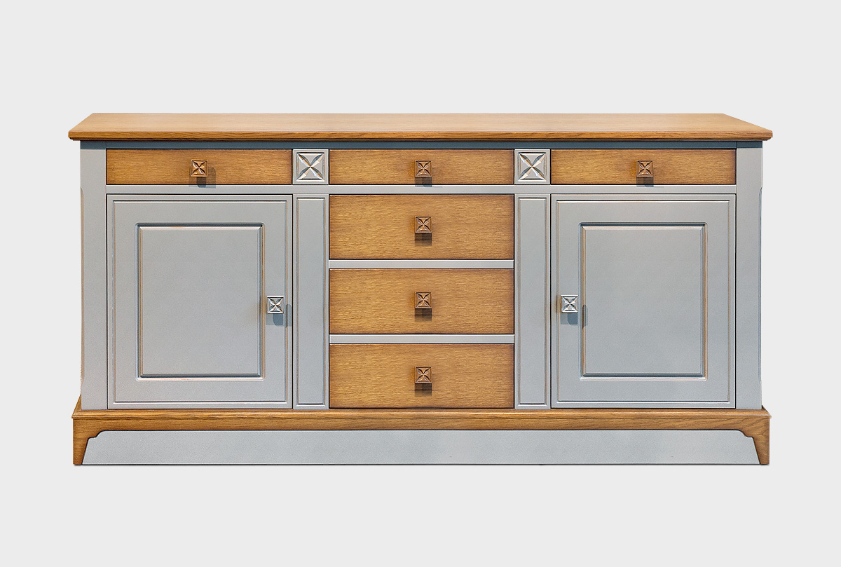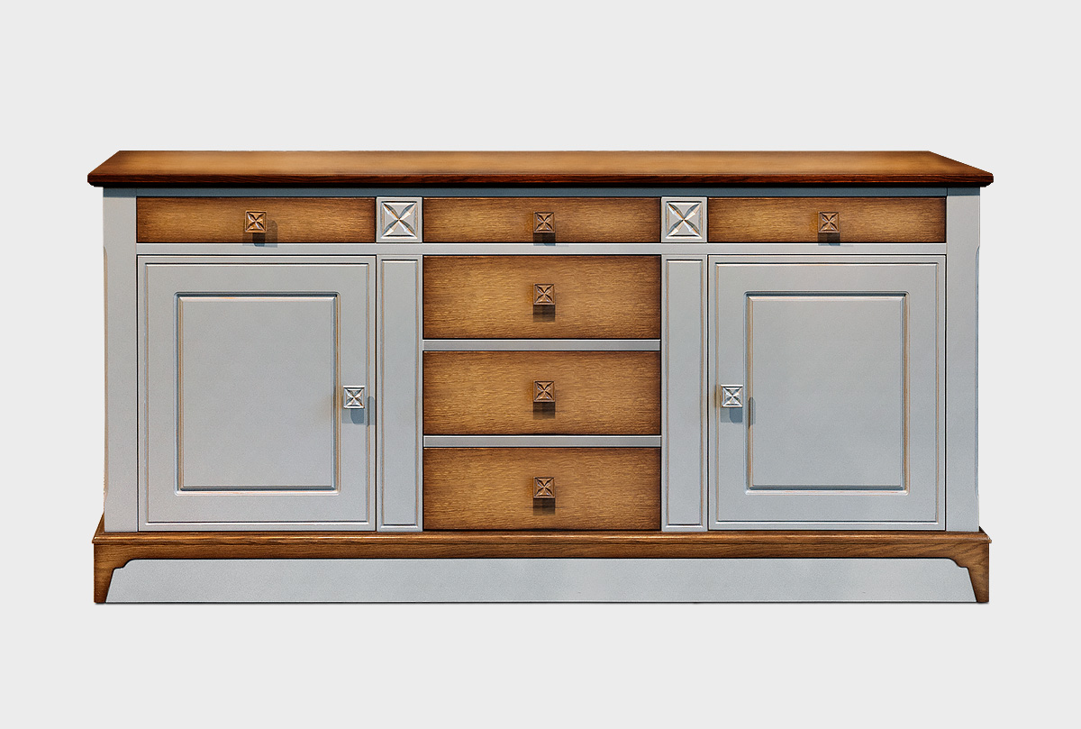 Тумба 3-х секционная "Brianson" в цвете "муссон+дуб" отлично подойдет для гостиной или столовой. Тумба оснащена тремя вместительными секциями с дверцей, и одна с выдвижными ящиками. Вы сможете без труда разместить всю кухонную утварь или другие предметы.