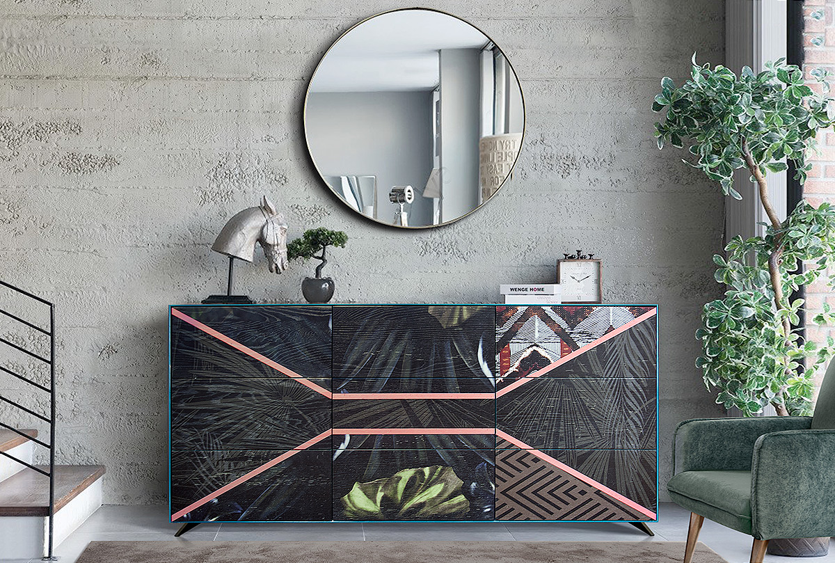 Тумба "Art Collection" 803, малахит, принт «тропик», 2 двери, 3 ящика, (.Г000046443)