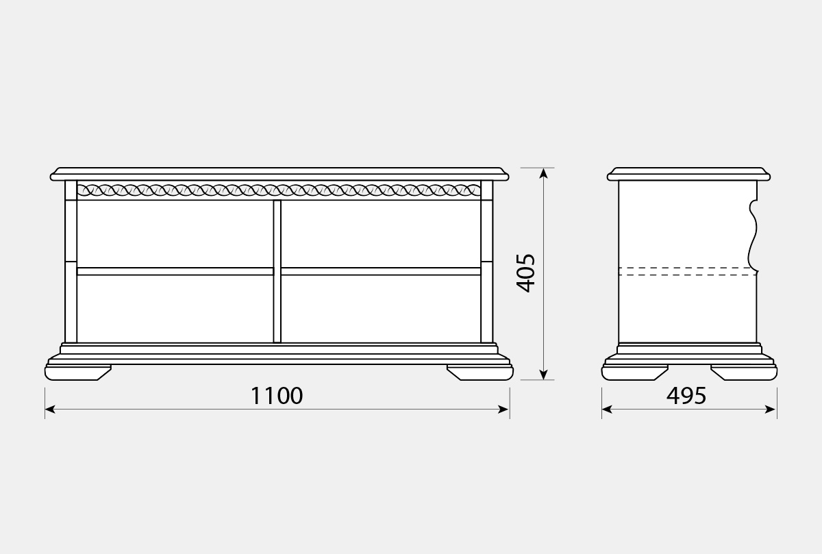 ✅ Вместительная тумба имеет два отделения, каждое из которых разделено полкой (нерегулируемой).