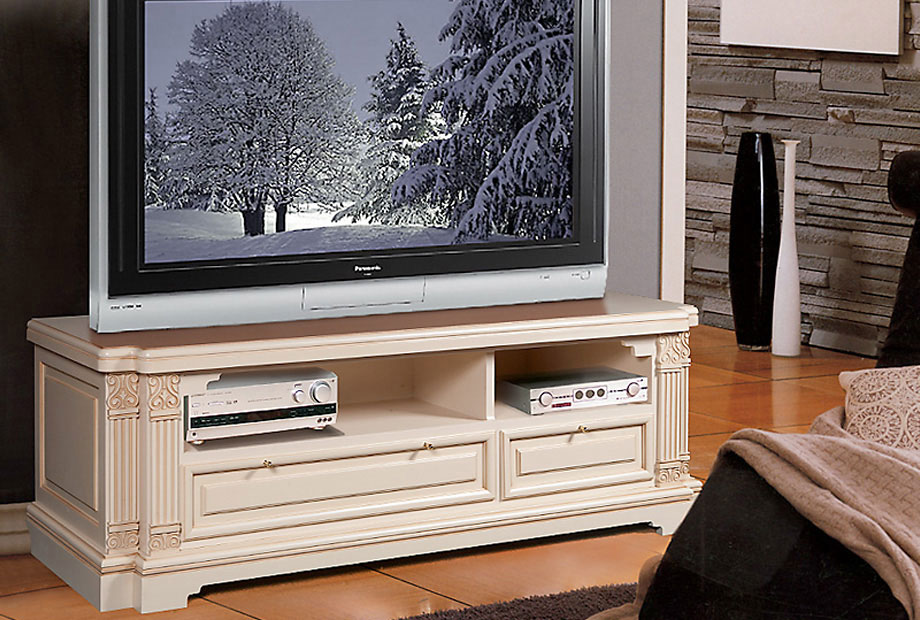 Выполненная из массива берёзы, тумба под ТВ "Престиж" 60 прекрасно впишется в гостиную любого дома или квартиры. Она достаточно изящна, и даже внушительный вид не придает ей громоздкости. Тумба в классическом стиле является настоящим произведением искусства. Сверху достаточно места для современного телевизора, а в специально предусмотренных нишах можно удобно разместить всю аудио- и видеоаппаратуру. Два ящика в нижней части предназначены для хранения дисков и различных мелочей.