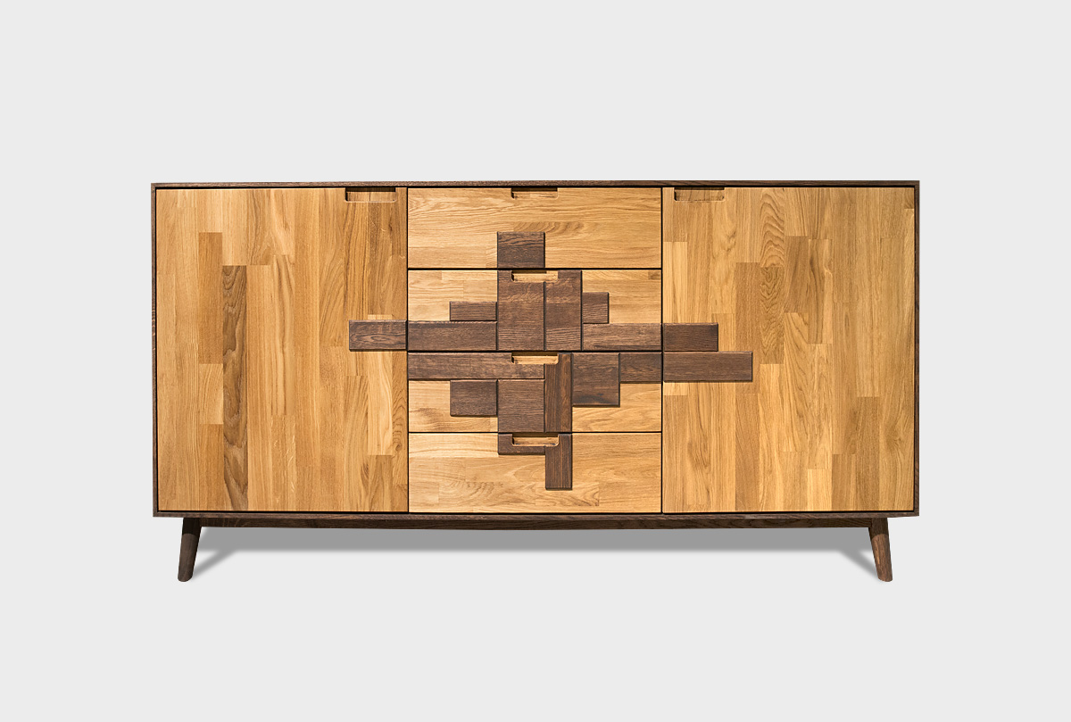Большая трёхсекционная тумба Irving Design («Ирвинг дизайн») 3 в цвете «графит, бейц-масло», материал - массив дуба.