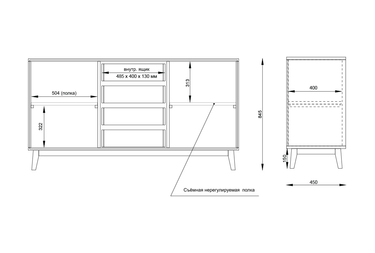 Тумба "Irving Design" 3; 2 двери, 4 ящика; графит, бейц-масло