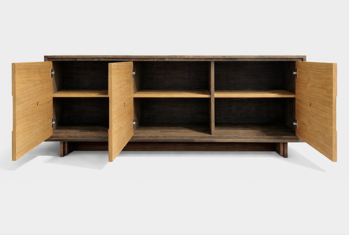 ✅ Функциональная тумба с тремя дверцами. В каждой нише расположены полки для более эффективного использования пространства.