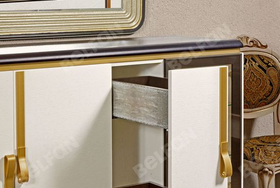 Тумба «Мадлен» (Madlen) имеет неповторимый дизайн, благодаря интересной текстуре дерева в сочетании с эксклюзивной фурнитурой, а наличие отделения со стеклянными дверьми придает тумбе особую привлекательность.