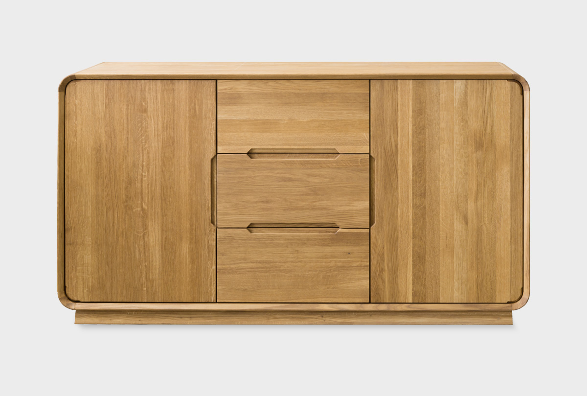 Тумба «Монблан» 3 в цвете «бейц-масло» — воплощение эко-минимализма в практичном формате. Благодаря трём центральным выдвижным ящикам и двум боковым отделениям с полками, она легко справится с организацией хранения в гостиной, спальне или столовой. Геометрически выверенный силуэт и утопленные ручки создают ощущение чистоты и порядка, а плавно скруглённые углы добавляют мягкости и безопасности.