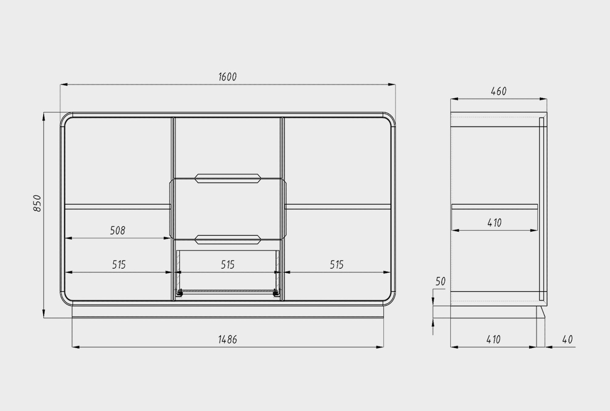 ✅ Размеры: ширина — 1600 мм, высота — 850 мм, глубина — 460 мм.