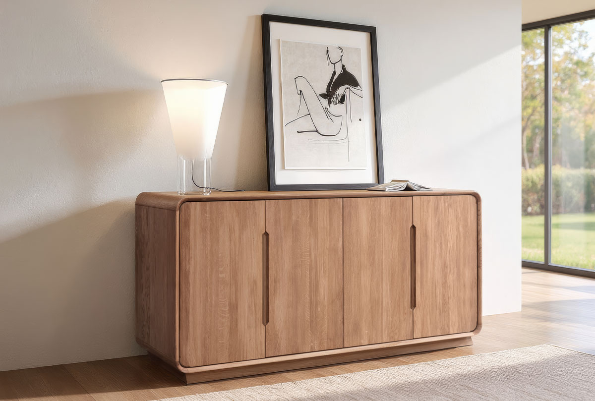 ✅ Внутри — четыре вместительные секции, каждая из которых оснащена регулируемой по высоте полкой (ширина 410 мм). Это даёт свободу в хранении — от сервизов и текстиля до документов или техники.