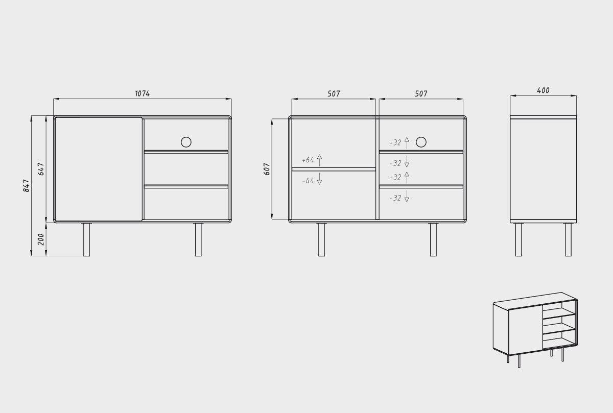 1074x847x400 мм