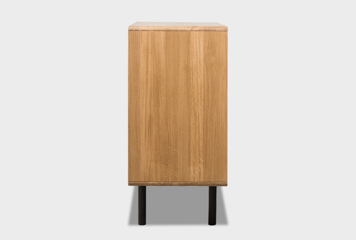 Правая двухсекционная тумба "Норман" 2 с нишей из дуба в цвете дуб натуральный с фасадами черного цвета на металлических ножках в стиле Лофт.