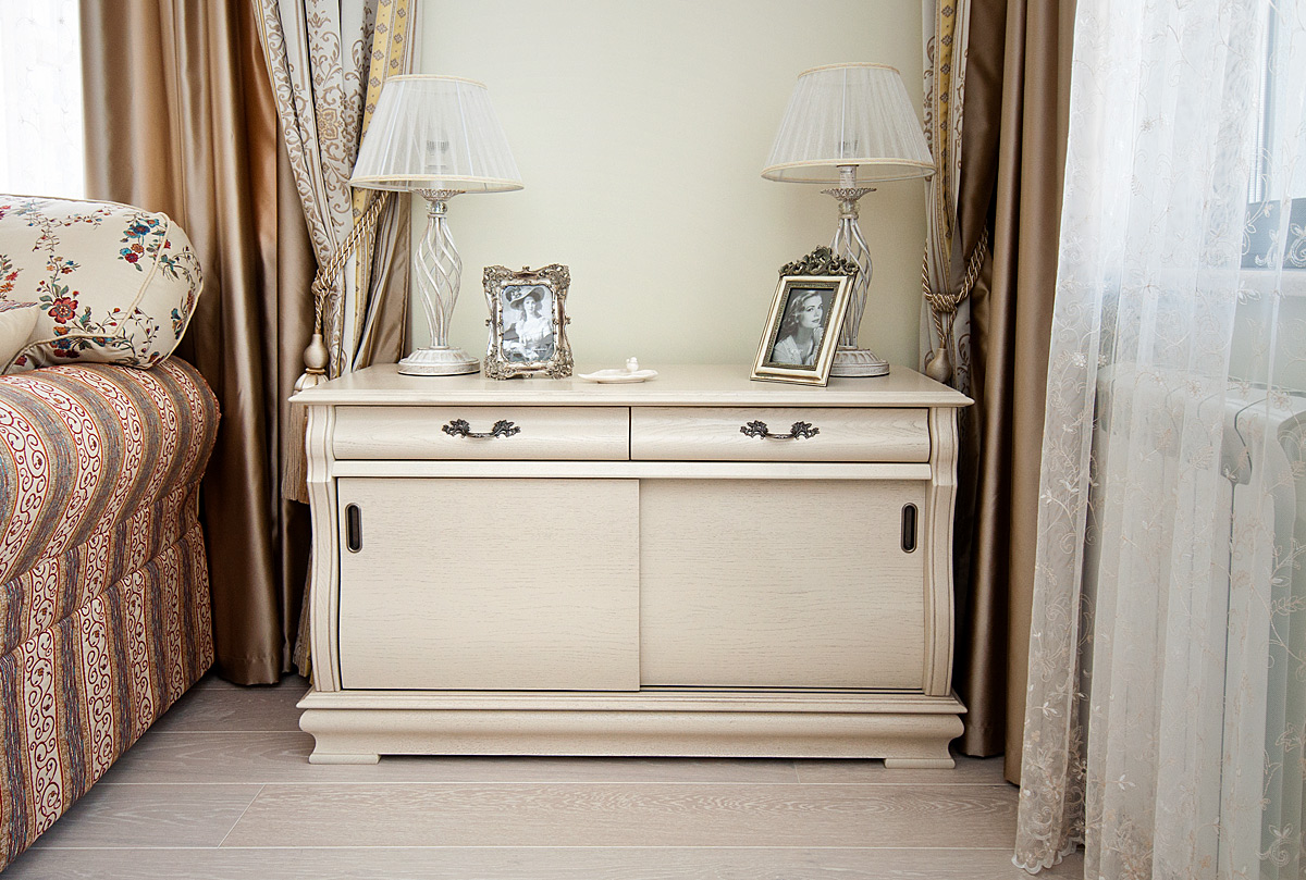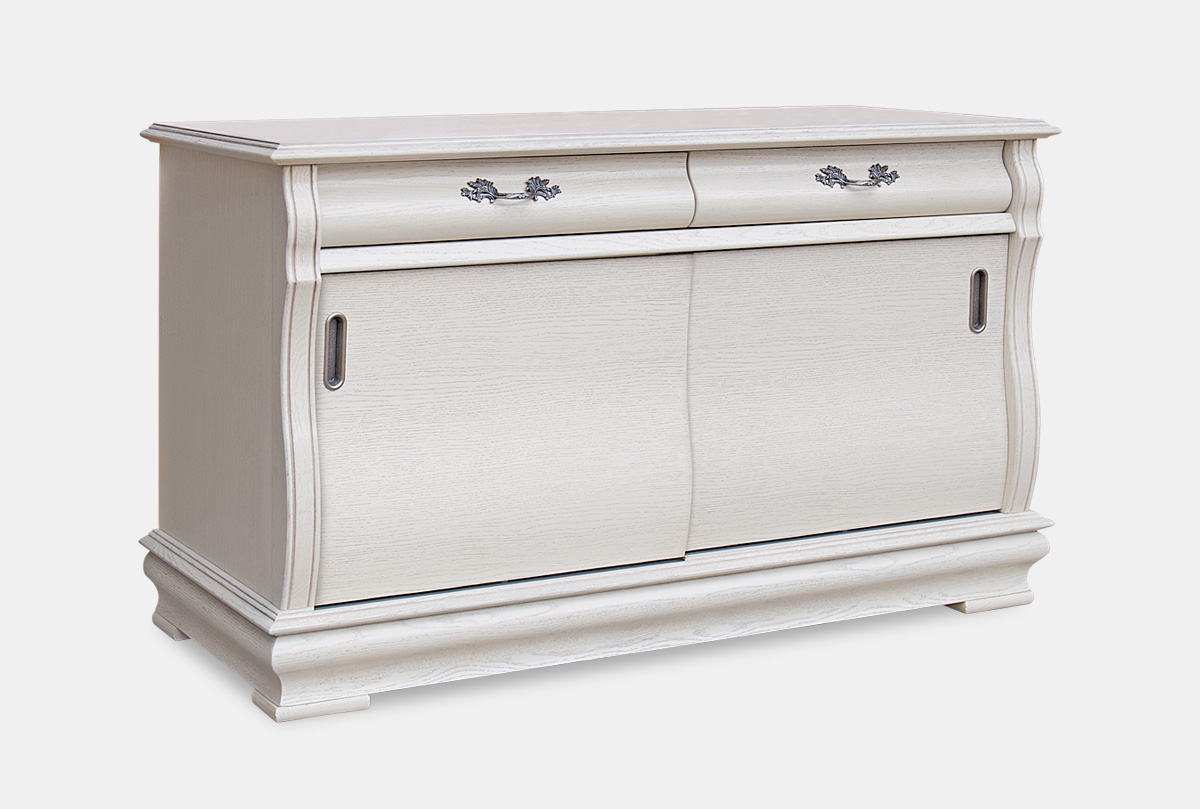 Изящная тумба-купе «Оскар» 08 в цвете «белая эмаль с темной патиной» – невероятно привлекательный представитель коллекции. В ее чертах просматриваются классические мебельные каноны, но при этом она удивительно современна. Прочный дубовый массив обретает неожиданно легкие и мягкие контуры, а велюр практично и изысканно выстилает дно выдвижных ящиков. Тумба прекрасно справляется с ролью экстравагантной детали классического и винтажного интерьера.