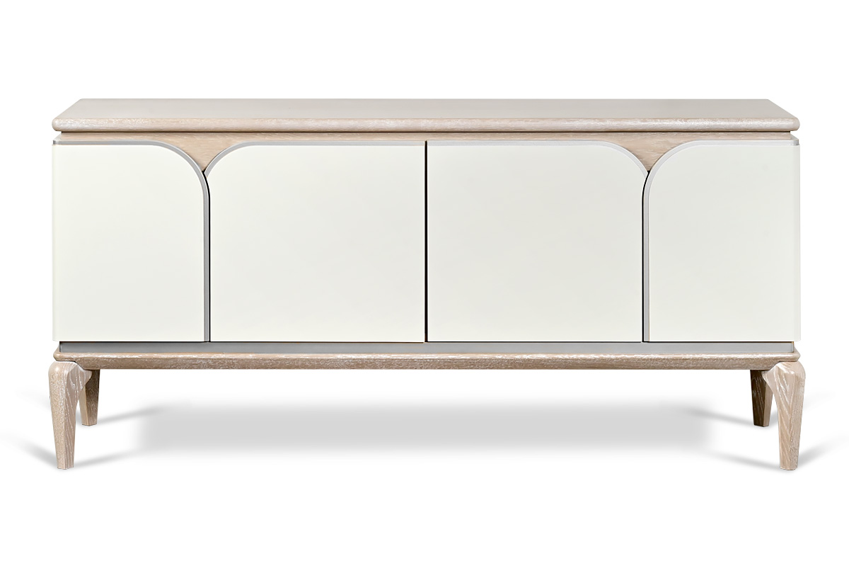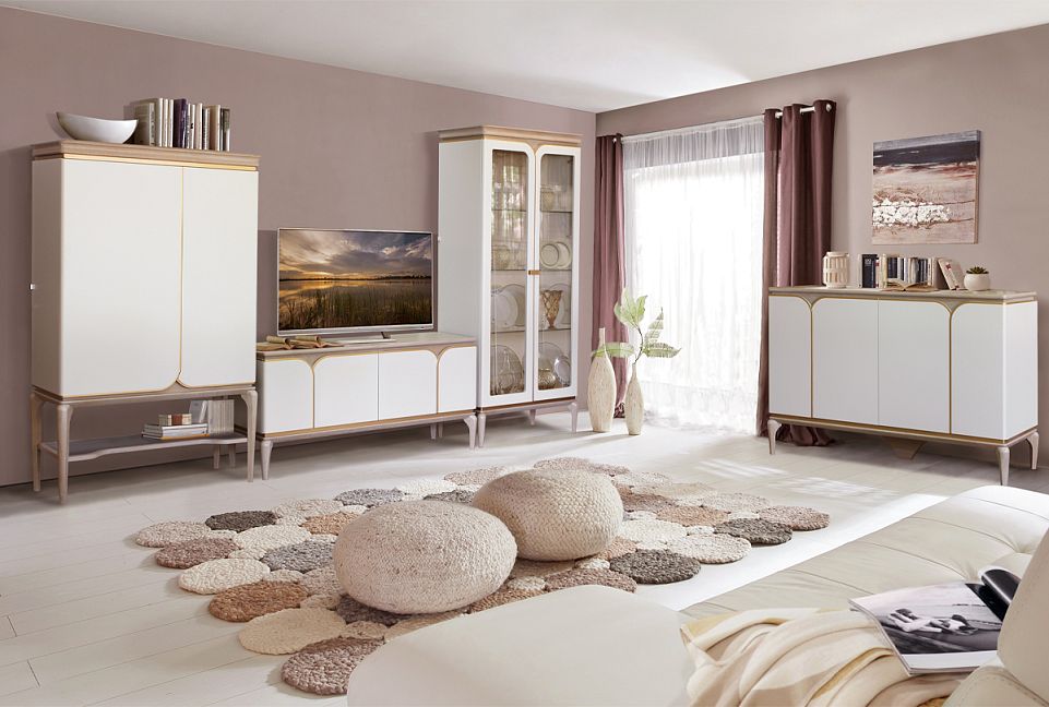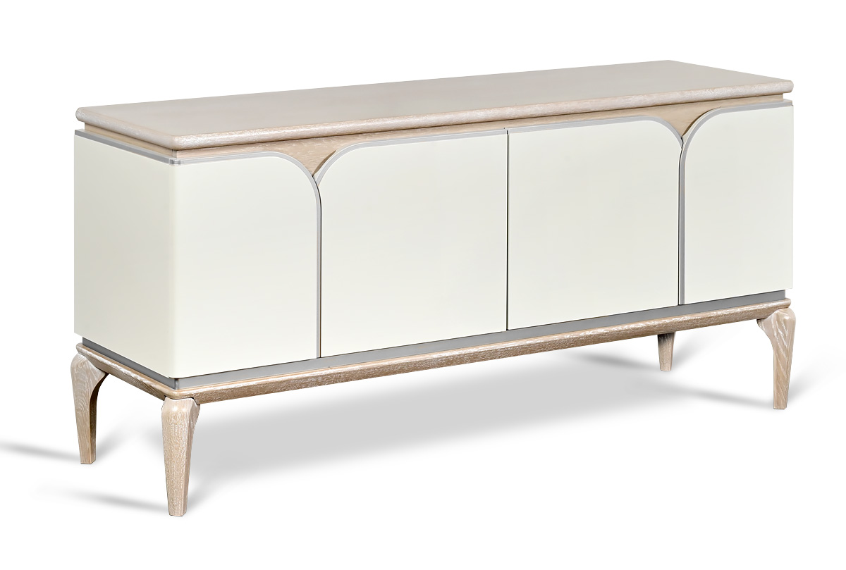 Тумба под ТВ «Алекса» идеально впишется в гостиную как в современном, так и в классическом стиле. Ее эксклюзивный дизайн придется по вкусу всем любителям неоклассики. Выполненная из массива и шпона дуба и экологичного мдф, ТВ тумба обладает повышенным функционалом. За центральными дверьми расположились по одной стеклянной полке, где можно разместить всю аппаратуру, а за крайними фасадами – ниши, куда можно убрать предметы побольше.