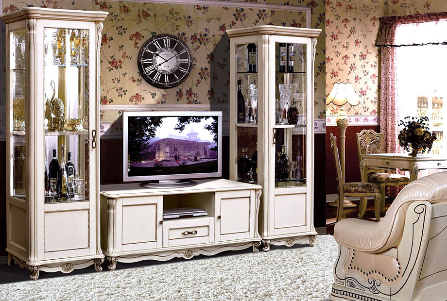Тумба под ТВ "Алези 2", слоновая кость с золочением, (.Г000001677)