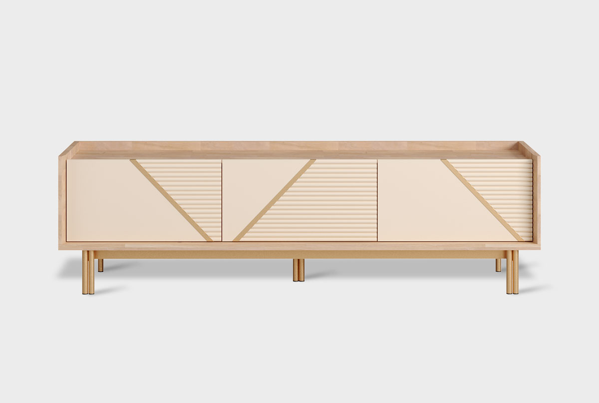 Тумба под телевизор Avenue («Авеню») 160 в цвете "персиковое масло, нюд" изготовлена из натурального дерева, которое имеет благородную текстуру. Фасады тумбы шелковисто-матовые, а металлический декор придаёт ей изысканности. Опоры тумбы также выполнены из металла, что добавляет ей прочности и надёжности.