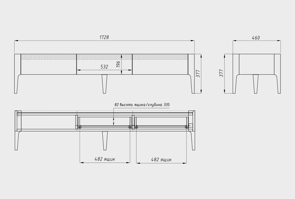 ✅ 3 вместительных выдвижных ящиков. Ширина тумбы 170 см.