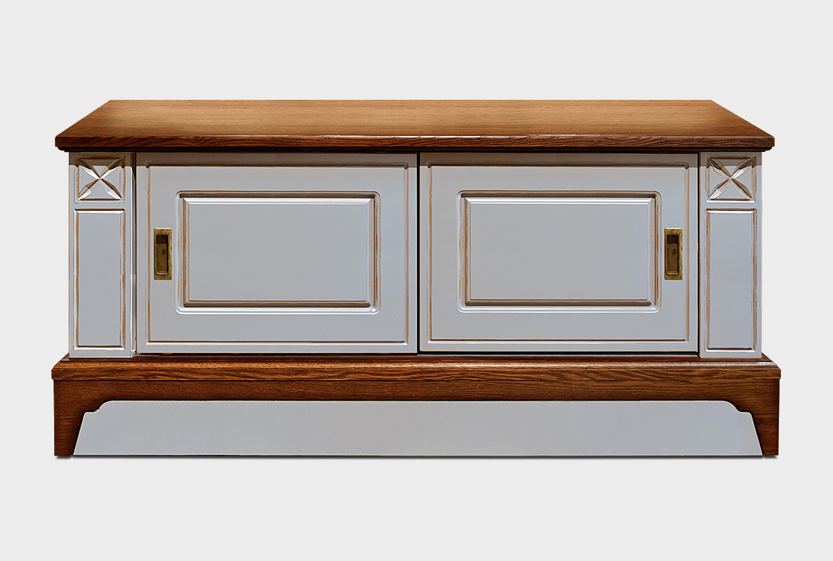 Тумба-купе под телевизор Brianson («Бриансон») в цвете "муссон+дуб", две секции, изготовлена из массива и шпона дуба.