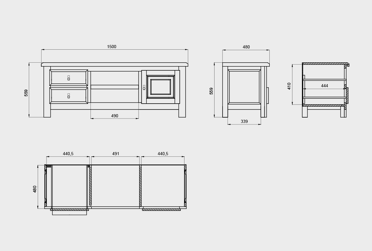 ✅ Размеры: ширина 1500 мм, высота 560 мм, глубина 480 мм.