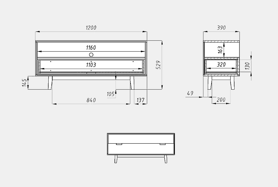 ✅ Выдвижной ящик — можно хранить кабели, пульты и прочие мелочи, не загромождая открытую нишу. Максимальная нагрузка на выдвижной ящик - 20кг.