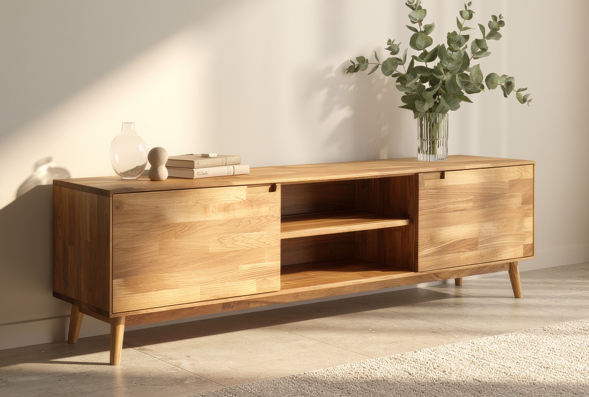 ✅ Оптимальная высота тумбочки позволяет разместить на ней телевизор на комфортной для просмотра высоте, а благодаря достаточной ширине (180) рядом можно поставить аудио-видео технику, декоративные аксессуары, положить журналы.