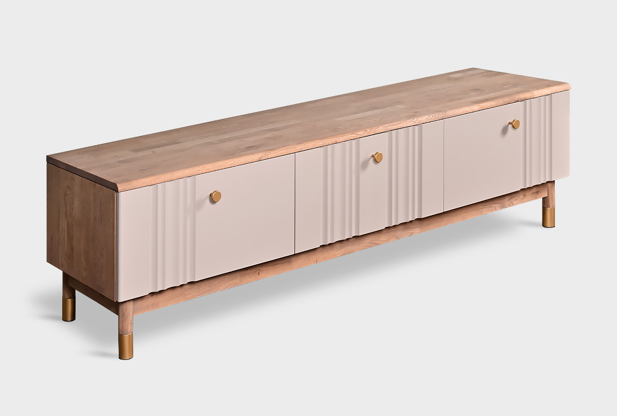 Тумба под ТВ «Меридиан» 180 из дуба Корпус изделия выполнен в цвете «торфяной дуб», а фасад — в цвете «нирвана».