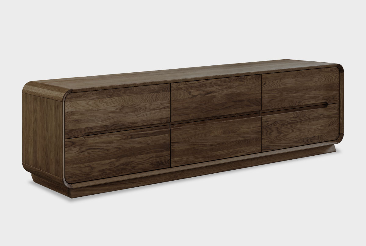 ✅ Изделие оснащено 6 вместительными выдвижными ящиками, в которых удобно хранить кабели, пульты, журналы, диски или даже текстиль. Глубина ящиков — 385 мм.