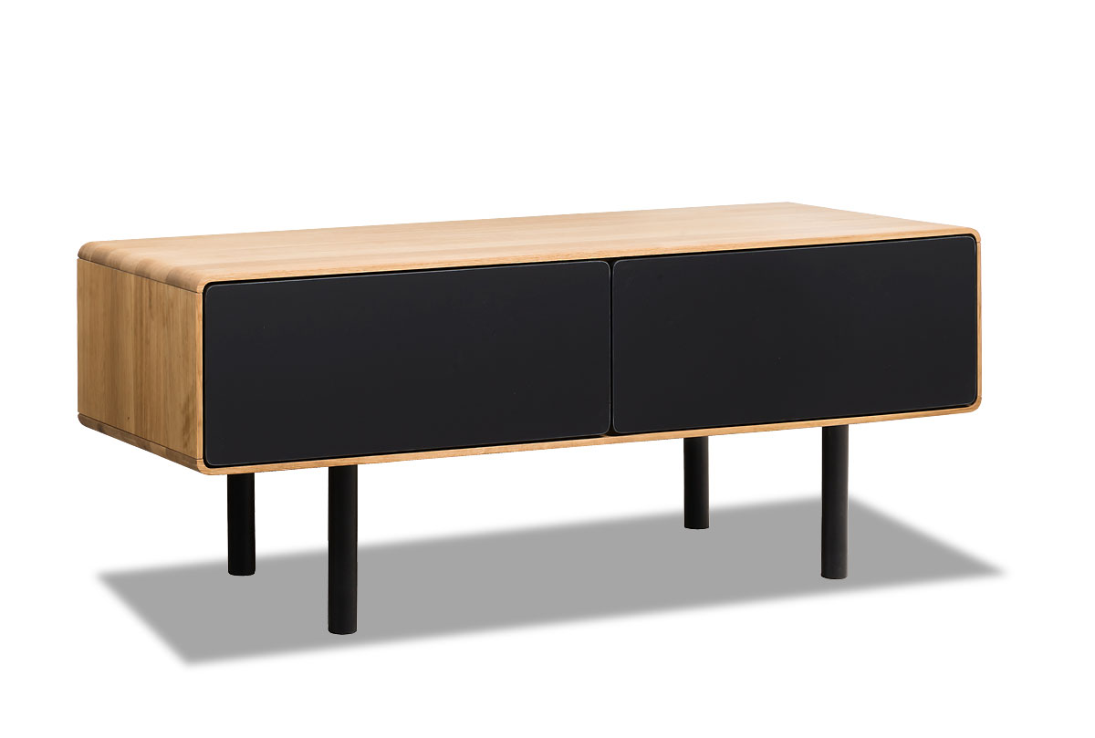 Тумба под ТВ низкая "Norman" 2, дуб натуральный, чёрный, (.Г000073673)