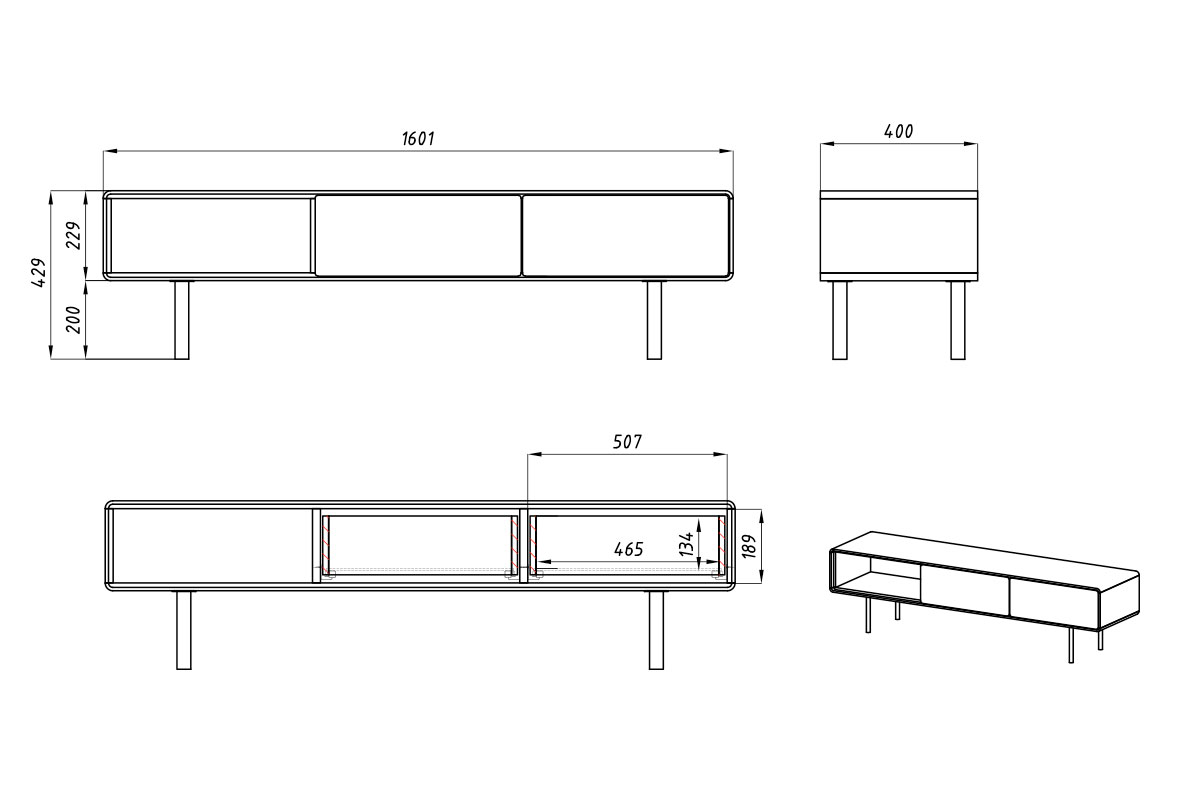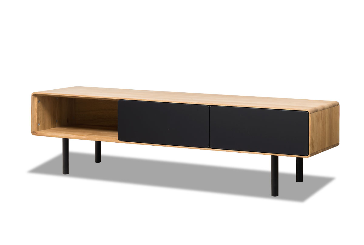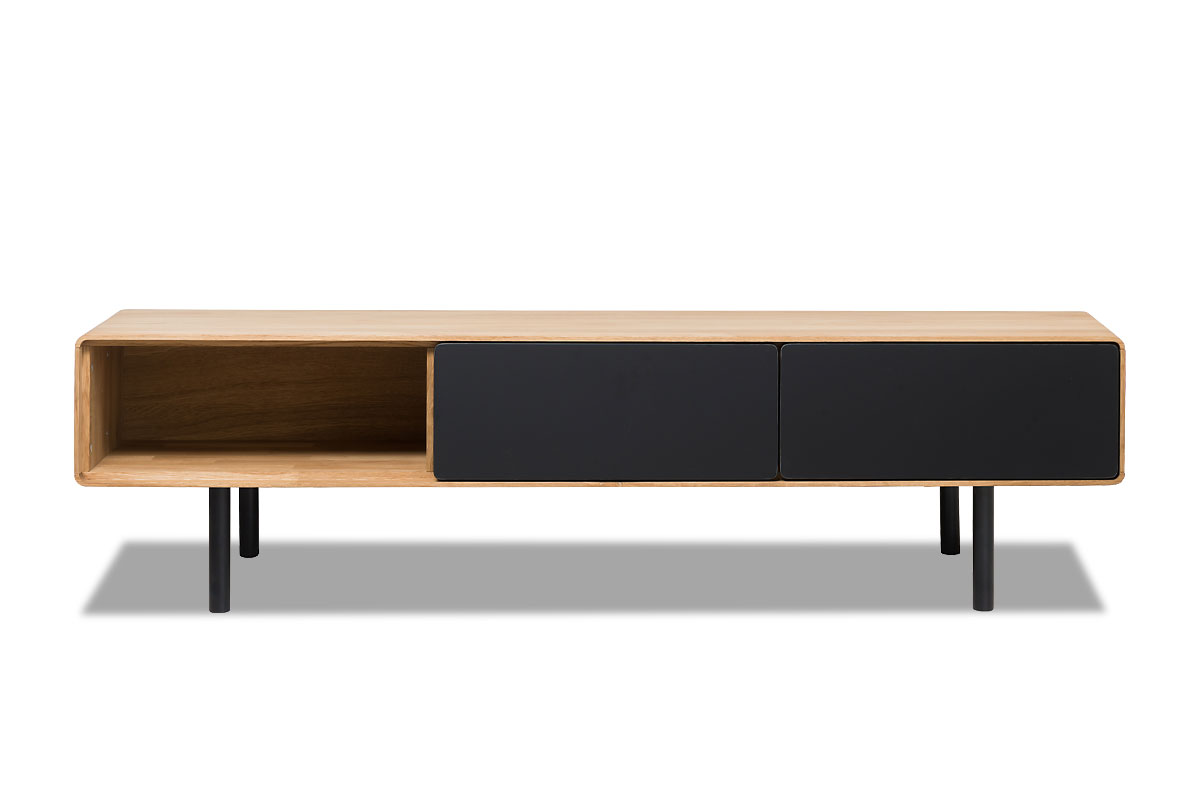 Тумба под ТВ низкая "Norman" 3 с нишей (левая), дуб натуральный, чёрный, (.Г000073677)
