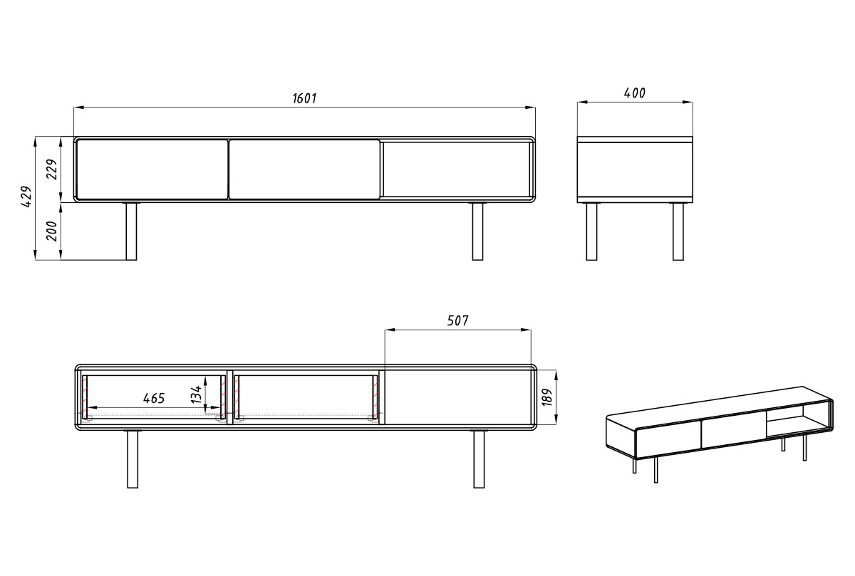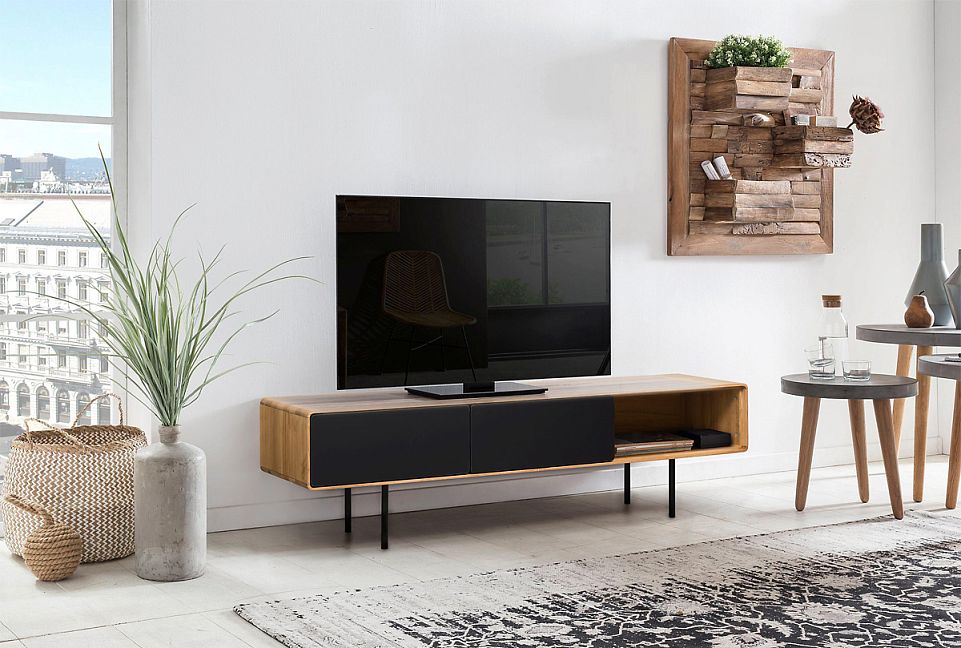Тумба под ТВ низкая "Norman" 3 с нишей (правая), дуб натуральный, чёрный, (.Г000073675)