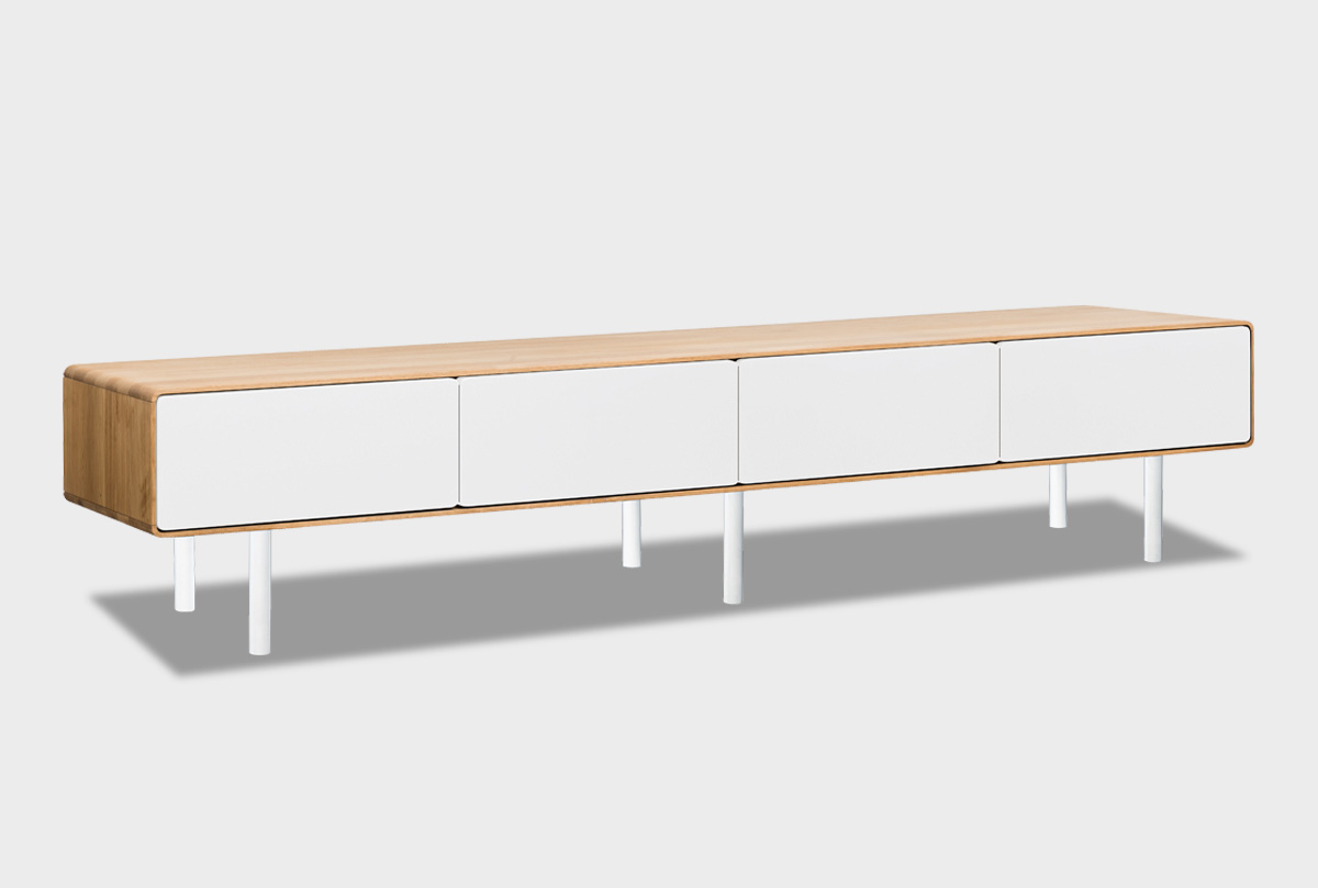 Тумба под ТВ низкая "Норман" 4, дуб натуральный, белый, (.Г000073678)
