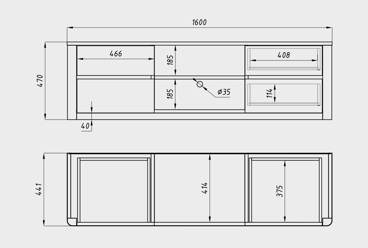✅ Оптимальная высота тумбочки позволяет разместить на нем телевизор на комфортной для просмотра высоте, а благодаря достаточной ширине (160 см.) рядом можно поставить декоративные аксессуары, положить журналы.