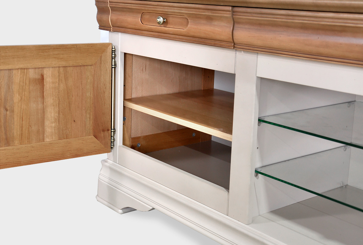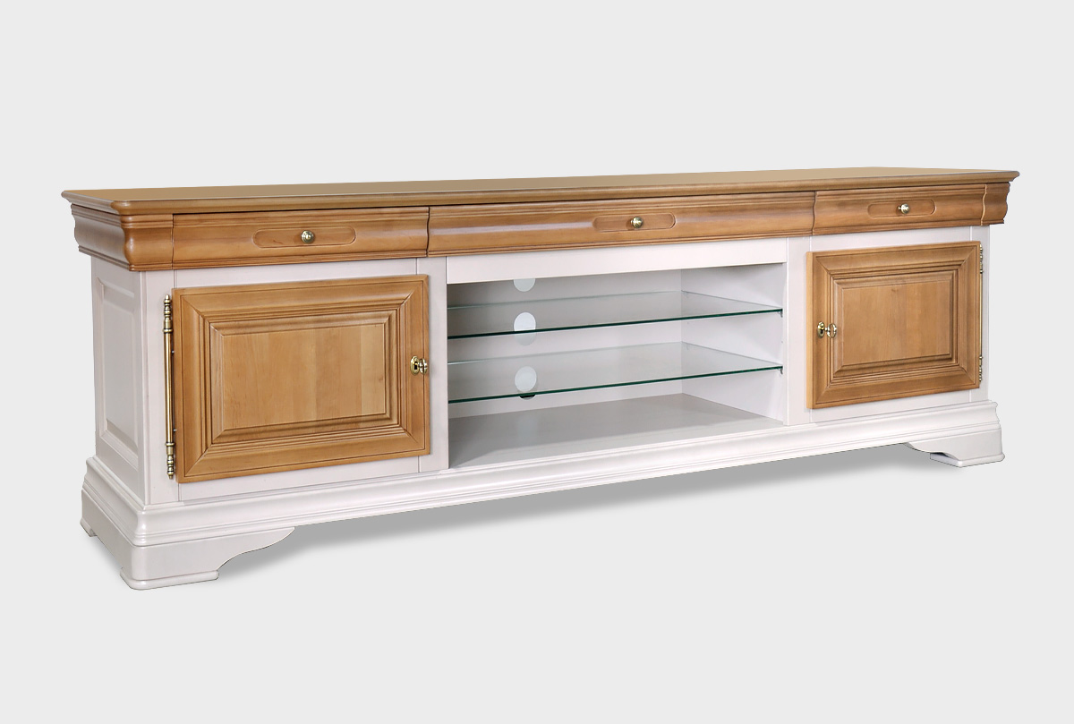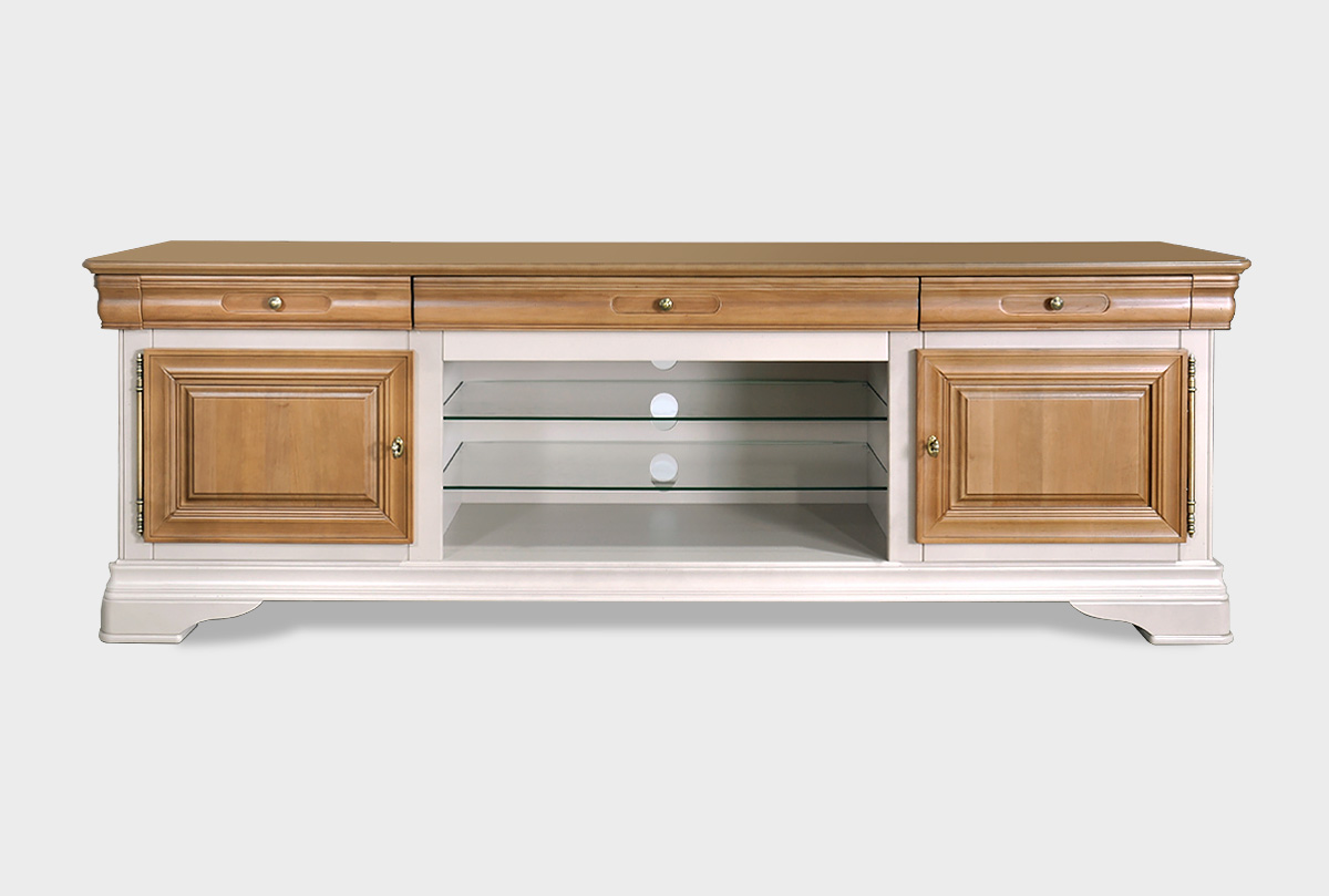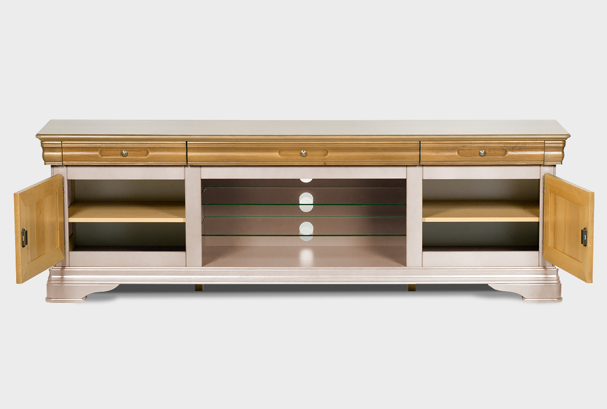 Выполненная из массива и шпона ольхи несравненная тумба под ТВ «Оливия» с нишей в цвете «пудра» прекрасно впишется в гостиную как загородного дома, так и любой квартиры. Она элегантна и изысканна. Ее ширина позволяет разместить самые современные телевизоры, а на стеклянных полках можно удобно расположить всю аппаратуру. Более того ТВ тумба обладает тремя выдвижными ящиками, деликатно вписанными в столешницу и двумя нишами за закрытыми дверьми.