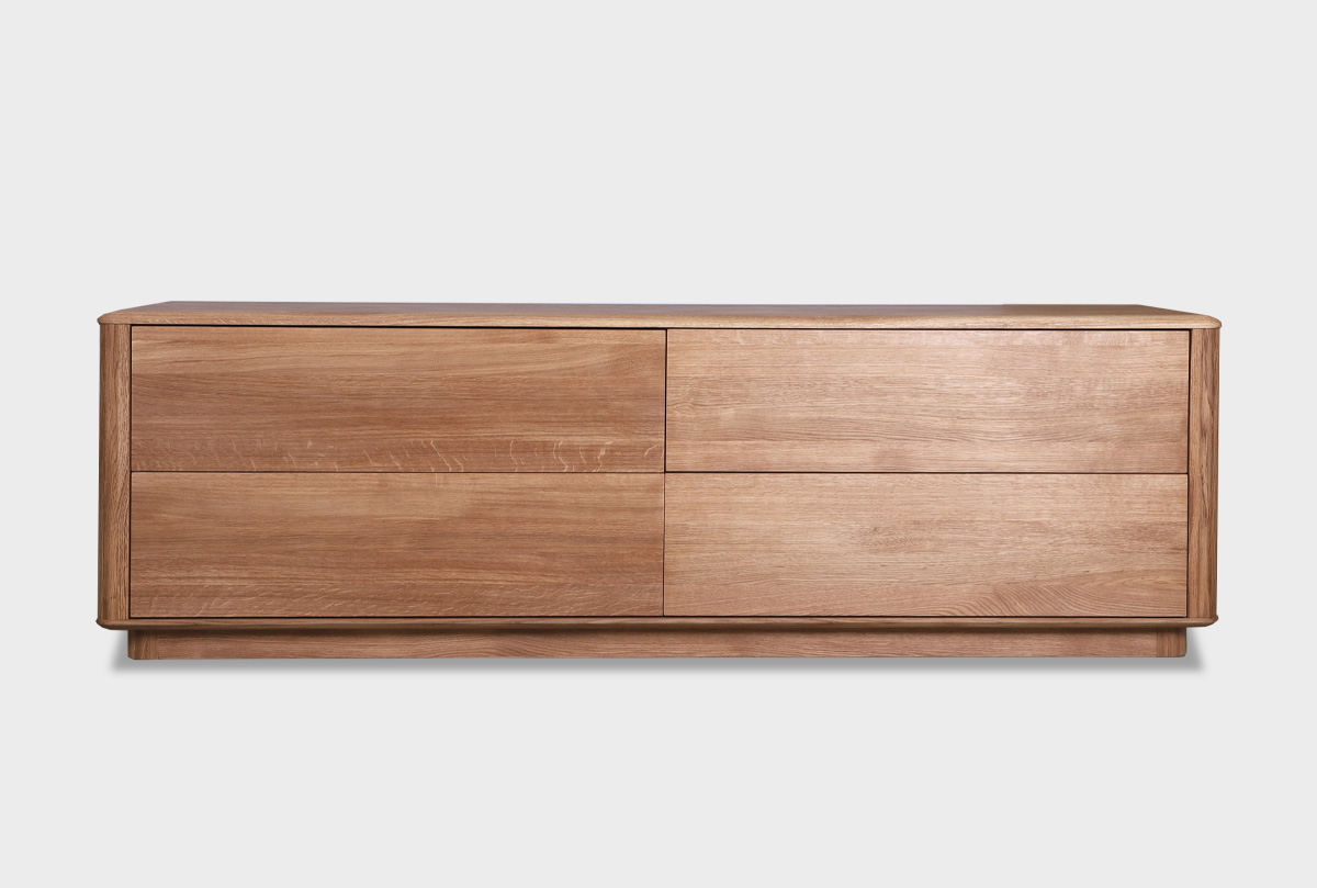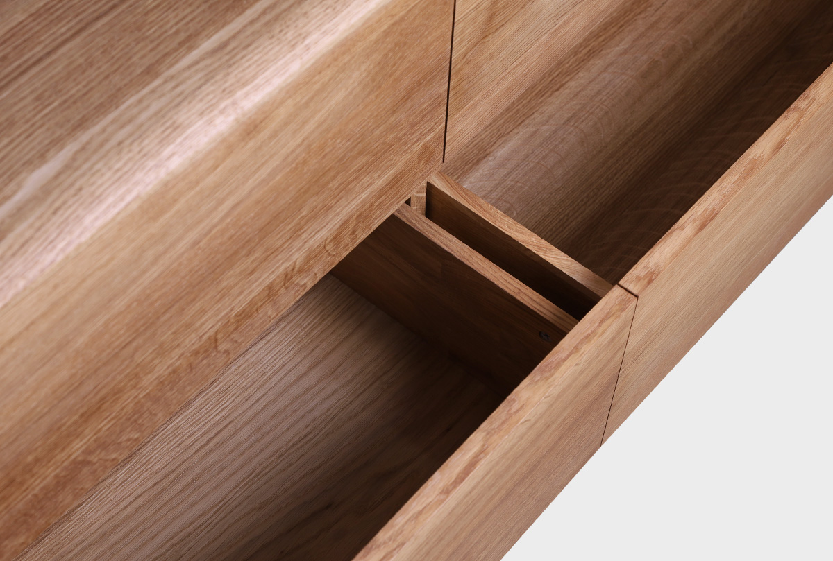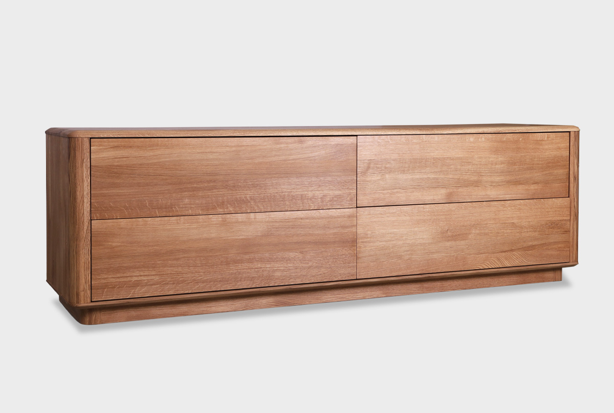 Тумба под ТВ «Origin» — пример того, как минимализм может быть выразительным. Благодаря плавным очертаниям и отсутствию лишних деталей, изделие выглядит легко и современно. Широкие ящики обеспечивают удобное хранение техники, аксессуаров и документов, помогая сохранить порядок в гостиной. Продуманная конструкция делает тумбу удобной в использовании — система Push-To-Open позволяет открывать ящики лёгким нажатием, без ручек и усилий.