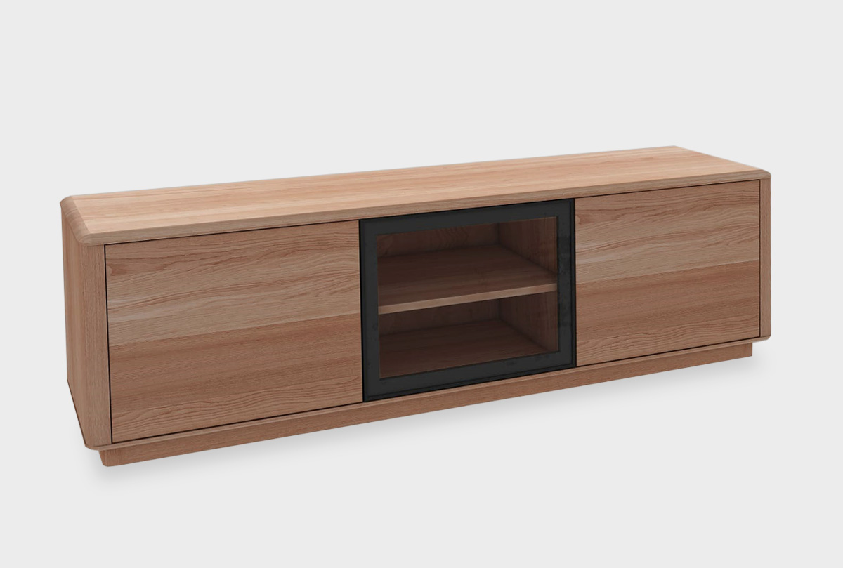 Тумба под ТВ «Origin» со стеклом — современное решение для гостиной, объединяющее натуральный дуб и элегантные акценты из тонированного стекла. Центральная стеклянная вставка, обрамлённая тёмной рамкой, создаёт визуальный контраст и придаёт модели глубину. Две боковые секции скрывают вместительные отделения для хранения техники, книг или аксессуаров, а центральная зона идеально подходит для аудиоаппаратуры.