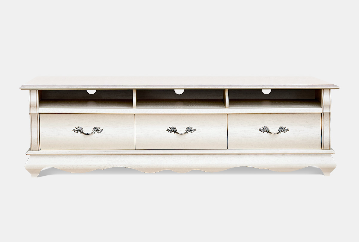 Утонченная тумба под ТВ из коллекции «Оскар» в цвете «белая эмаль с темной патиной» идеально дополнит интерьер современной гостиной либо столовой. Мебель, выдержанная в современном классическом стиле, характеризуется плавными линиями и продуманностью каждой детали. В схожих с классическими формах прослеживается мягкость и гармония. Изделие выполнено из массива дуба, поэтому помимо красивой текстуры отличается повышенной прочностью. Дно выдвижных ящиков отделано велюром.