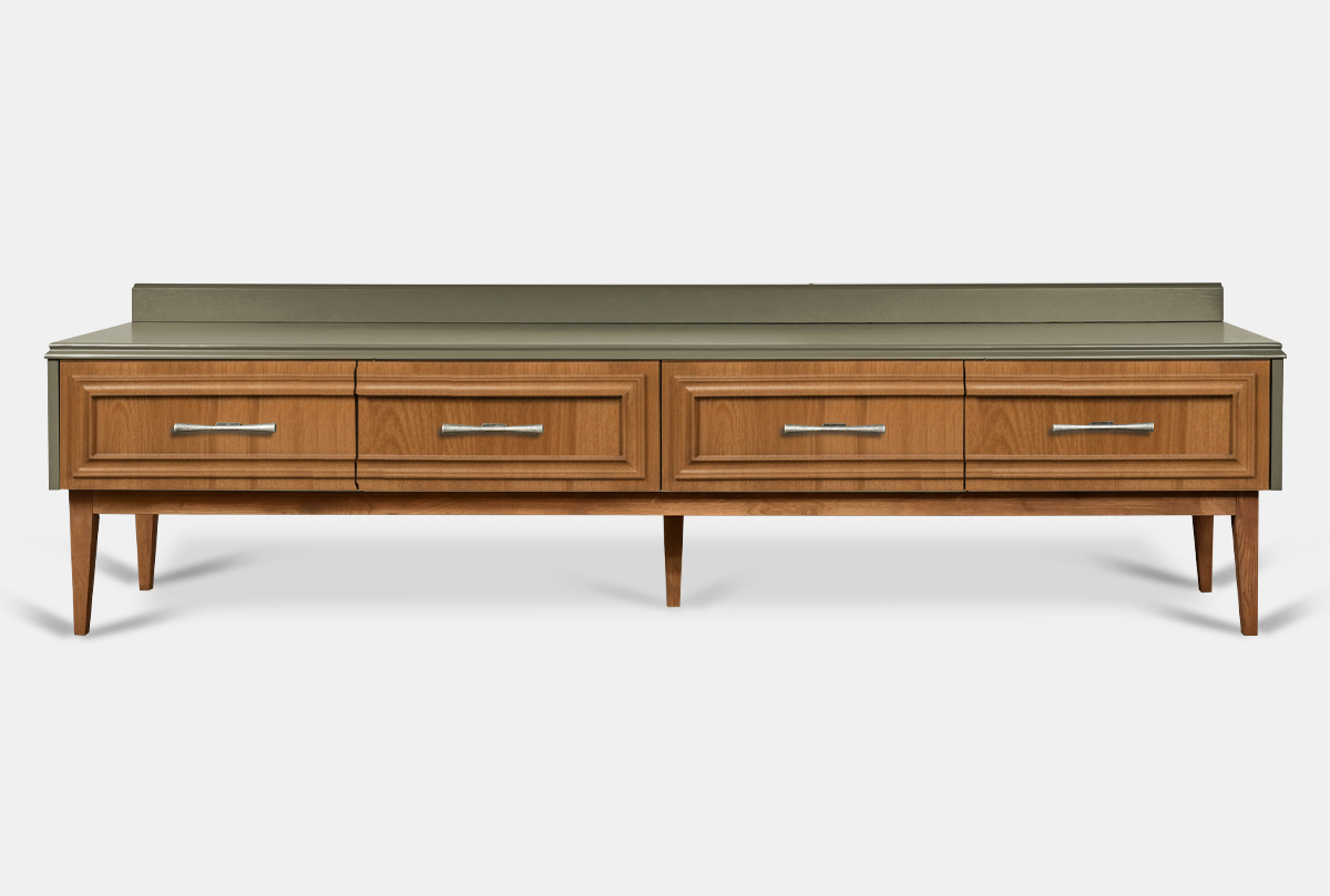 Тумба под ТВ «Сакраменто» 4 ящика в цвете «тауп, янтарь» из дуба. в стиле современной американской классики для Вашей гостиной.