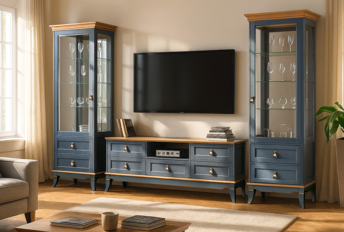 Тумба под ТВ «Стюарт» с нишей в цвете «марено, натуральный дуб» в классическом стиле для Вашей гостиной.