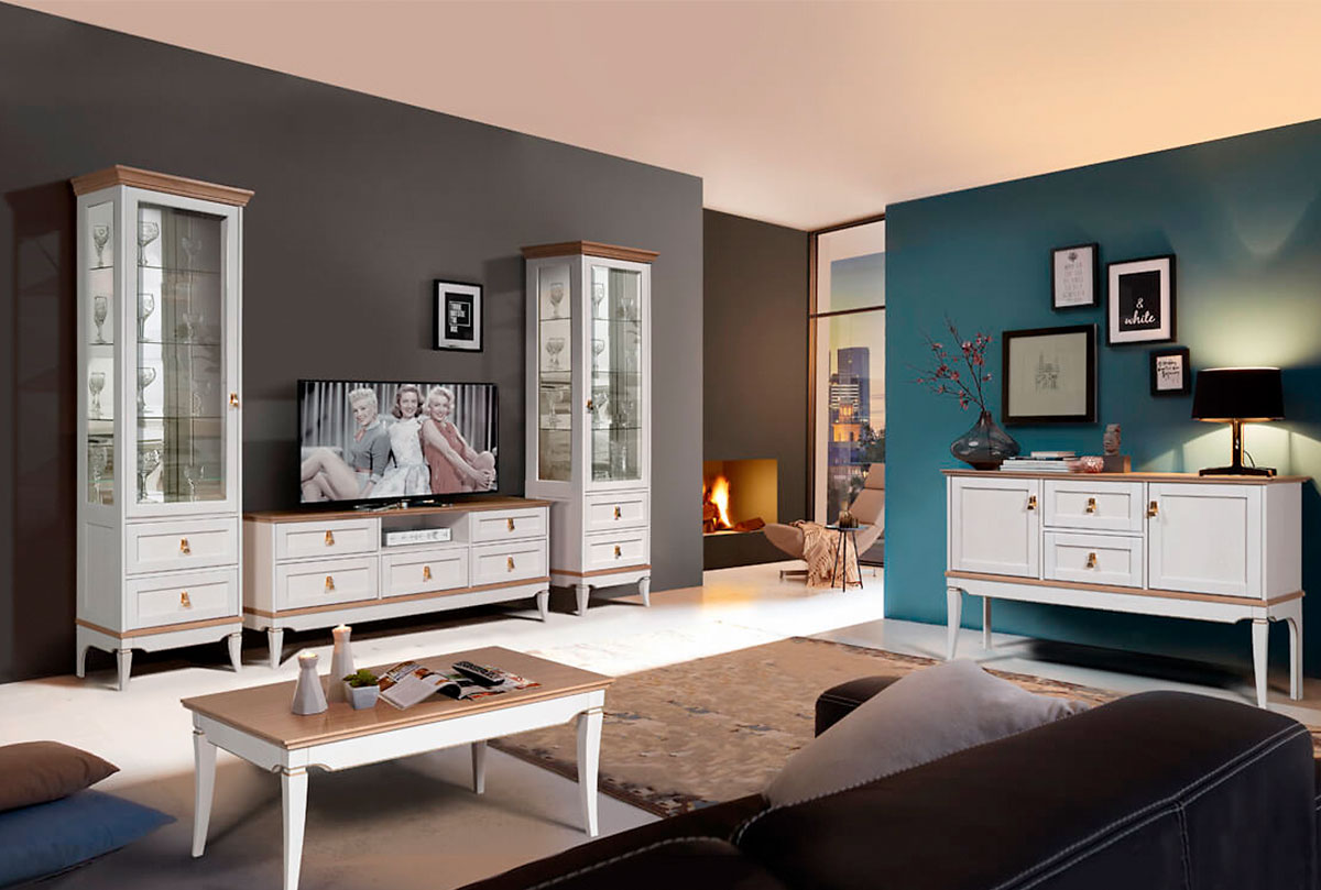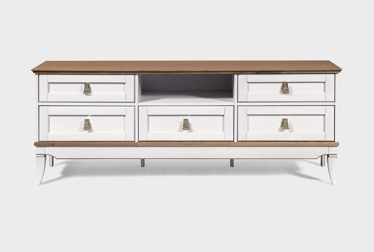 Тумба под ТВ «Стюарт» с нишей в цвете «дуб белый, натуральный дуб» в классическом стиле для Вашей гостиной.
