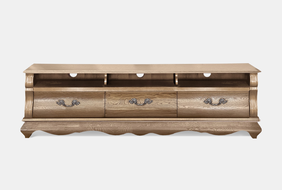 Утонченная тумба под ТВ из коллекции «Тэфи» идеально дополнит интерьер современной гостиной либо столовой. Мебель, выдержанная в современном классическом стиле, характеризуется плавными линиями и продуманностью каждой детали. В схожих с классическими формах прослеживается мягкость и гармония. Изделие выполнено из массива дуба, поэтому помимо красивой текстуры отличается повышенной прочностью. В коллекции представлены тумбы цвета «белая эмаль с темной патиной», «амбэр с белой патиной» и «классик». Дно выдвижных ящиков отделано велюром.