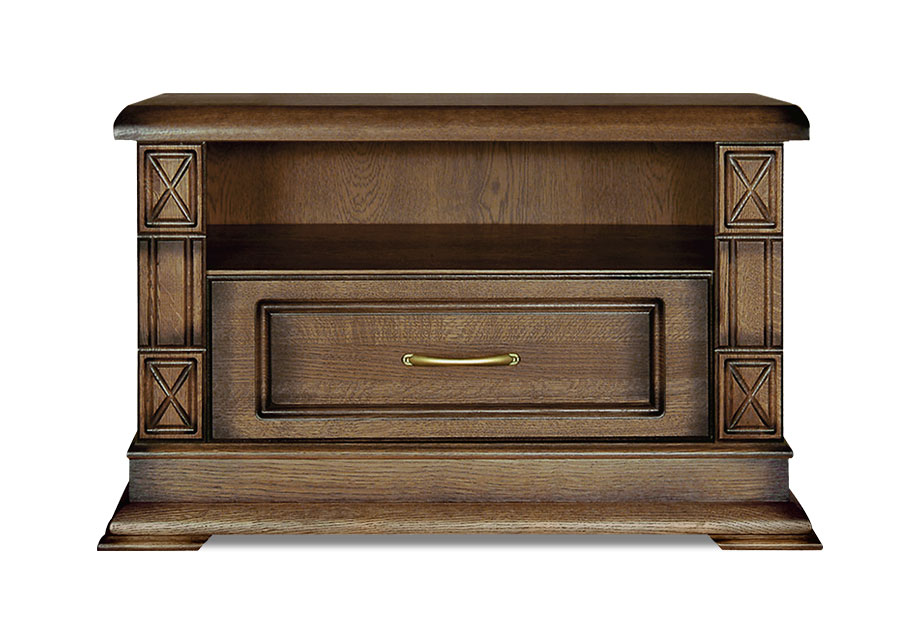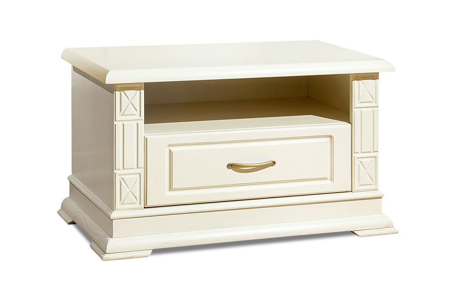 Миниатюрная тумба под ТВ из коллекции «Верди Люкс» подойдет для небольших квартир. Удобная высота позволит комфортно смотреть телевизор, а открытая ниша – поставить сопутствующую технику. В выдвижной ящик Вы сможете положить диски и разную мелочь, которую хочется спрятать от посторонних глаз.