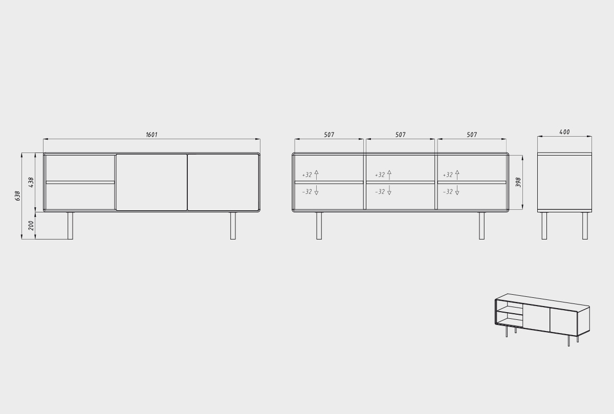 Тумба под ТВ высокая "Норман" 3 с нишей (левая), дуб натуральный, чёрный, (.Г000075113)
