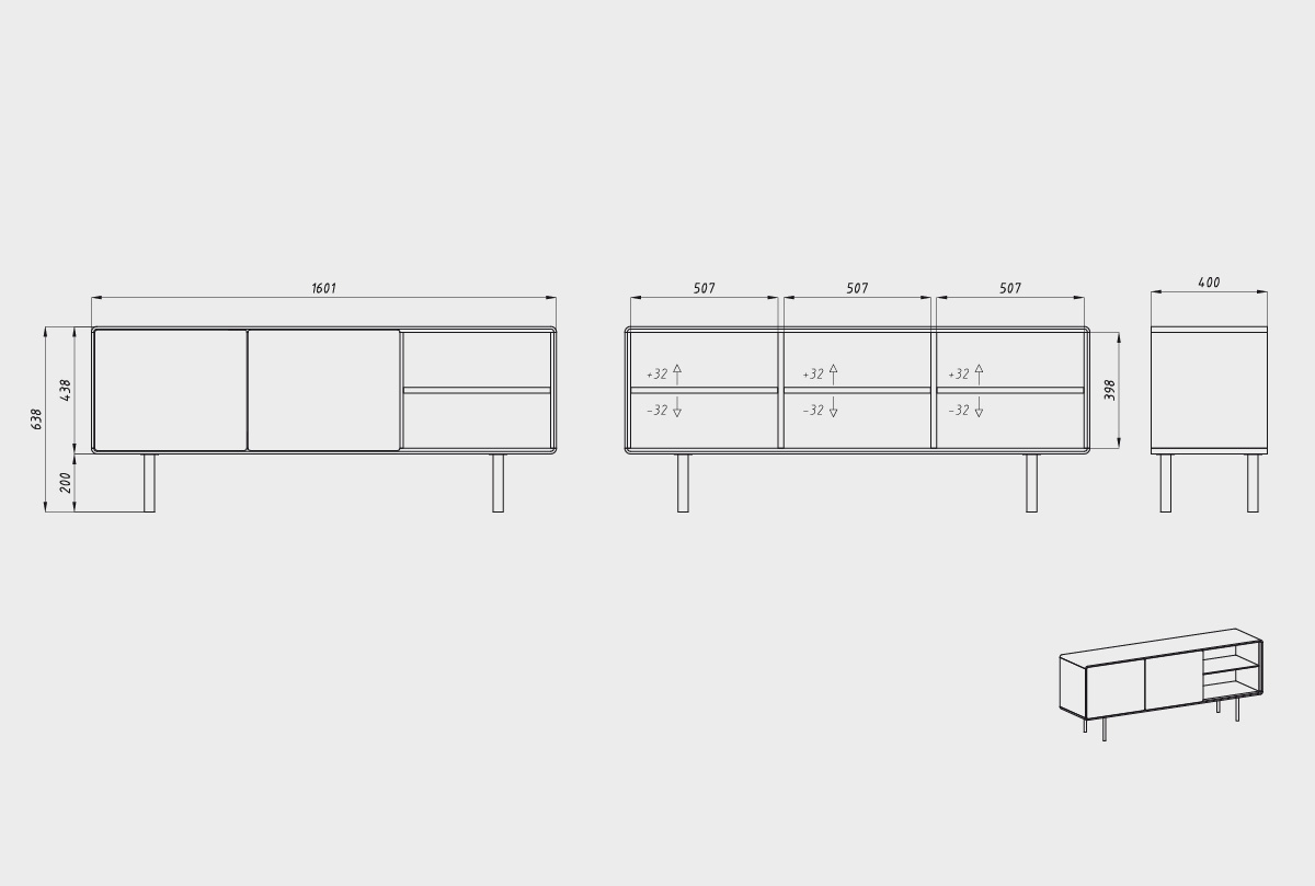 Тумба под ТВ высокая "Норман" 3 с нишей (правая), дуб натуральный, белый, (.Г000075109)