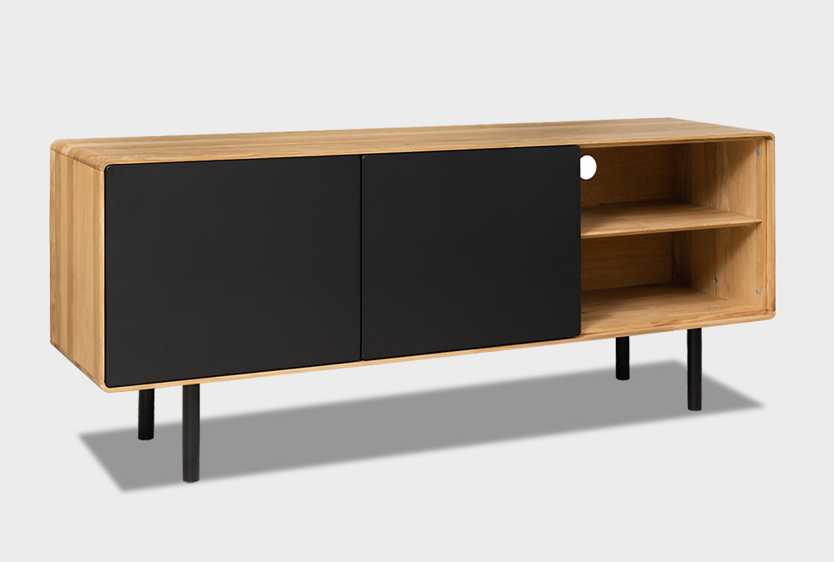 Тумба под ТВ высокая "Норман" 3 с нишей (правая), дуб натуральный, чёрный, (.Г000075110)