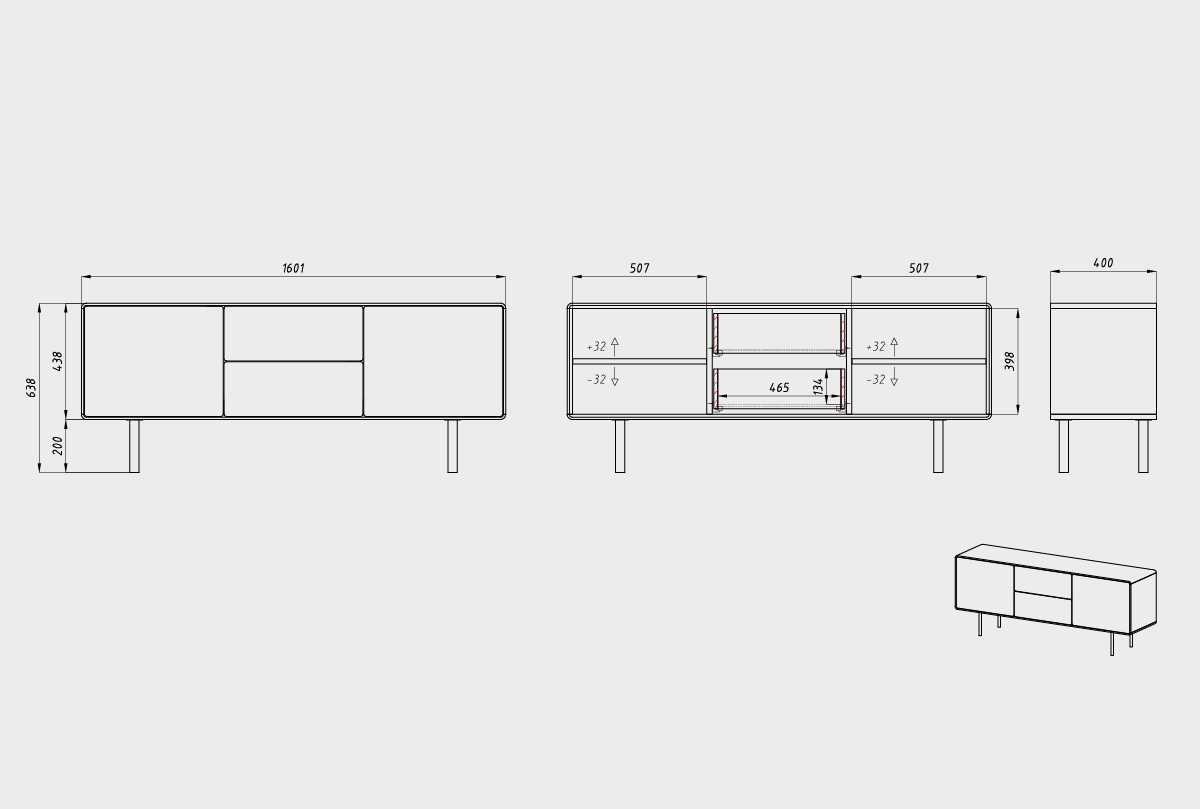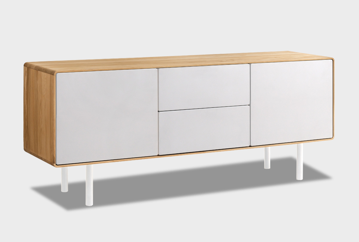 Тумба под ТВ высокая "Норман" 3 (с ящиками), дуб натуральный, белый, (.Г000073697)