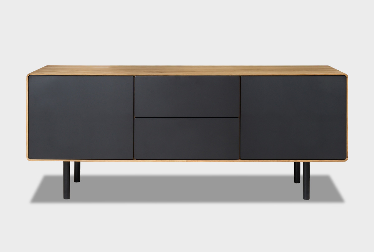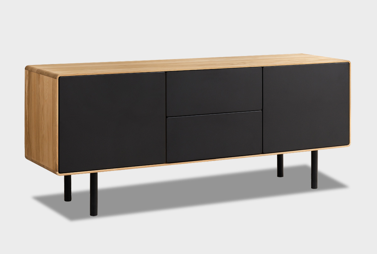 Тумба под ТВ высокая "Норман" 3 (с ящиками), дуб натуральный, чёрный, (.Г000073698)