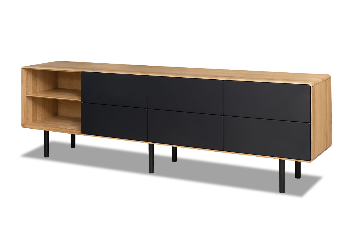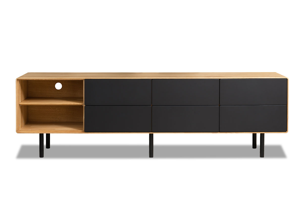 Тумба под ТВ высокая "Norman" 4 с нишей (левая), дуб натуральный, чёрный, (.Г000073693)