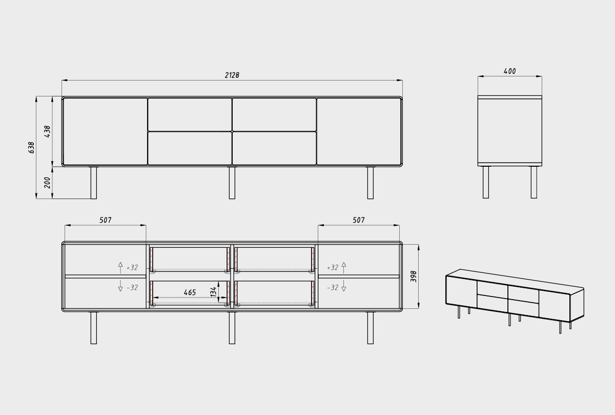 Тумба под ТВ высокая "Норман" 4 (с ящиками), дуб натуральный, белый, (.Г000073683)